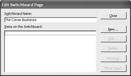 You should now be back on the Edit Switchboard Page dialog box. Just select Close from there.