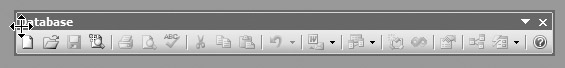 The toolbars that are available on the menu will vary depending on what tasks you are performing. If you are in the Database window, the Database toolbar will be available, as shown here.