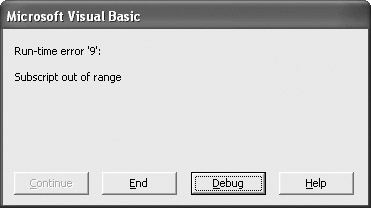Be very careful! The line it brings you to is the point at which the code “crashed.” However, many times the crash happens due to things going bad earlier in the program. For instance, you may have set a variable to a wrong size or reference; or perhaps Dim or ReDim declared a wrong value. Finding the problem may require a bit of detective work on your part.