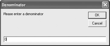 intDenominator = InputBox("Please enter a denominator", _