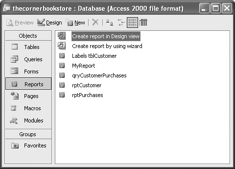 In this example I used MyReport as the name. Figure 13-21 shows that it was added as a report object to the database.