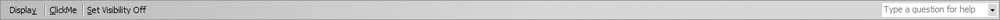 This means that when the user selects the Display menu item, a drop-down menu that includes the item “Enable ClickMe” appears. (Subsequent code also adds another menu item captioned “Disable ClickMe.”) The string assigned to the OnAction property can be used to define a command or procedure that is to be executed when this menu item is selected.
